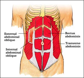 External oblique muscles — located on the sides of the rectus abdominis, it allows the trunk to bend laterally and twist.